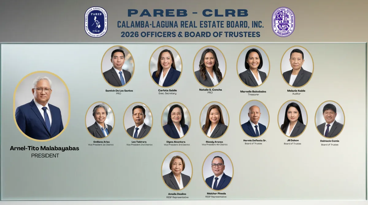 Calamba-Laguna Real Estate Board, Inc. (CLRB) is your gateway to a thriving real estate career. Our organization offers a wide range of invaluable resources and services tailored to both new and experienced real estate practitioners.